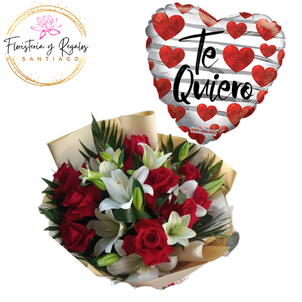 RAMO 10 ROSAS, 6 LILIUM Y GLOBO