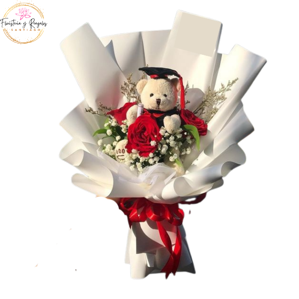 InicioGRADUACION RAMO 3 ROSAS, FOLLAJE, PELUCHITO LLAVERO Y LINDA ENVOLTURA