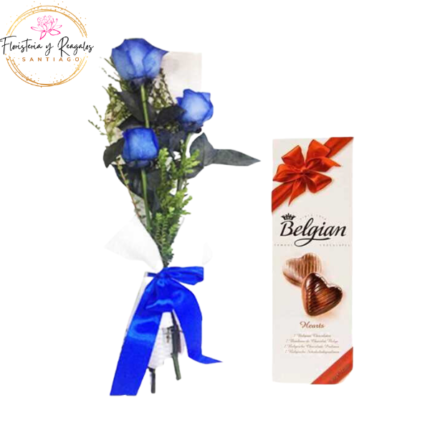 RAMO 3 ROSAS AZULES Y BOMBONES BELGIAN