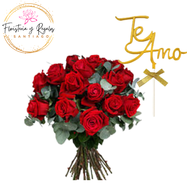 RAMO DE 12 ROSAS + TOPPER SIN FOLLAJE