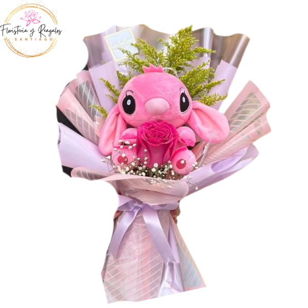 RAMO STITCH DE 15CM, ROSA Y LINDA ENVOLTURA