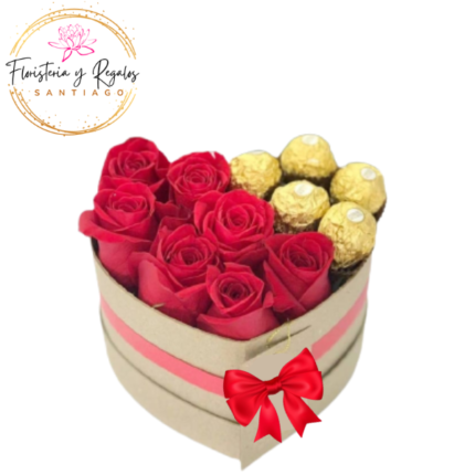 CAJA CORAZON 7 ROSAS ECUATORIANAS Y 5 BOMBONES