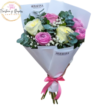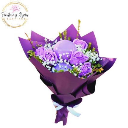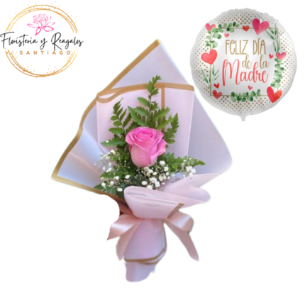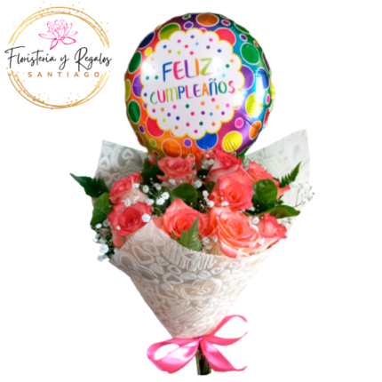 RAMO DE 8 ROSAS TIPO BOUQUET + GLOBO