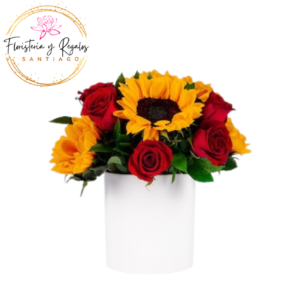 BOX DE 5 ROSAS 4 GIRASOLES + TOPPER