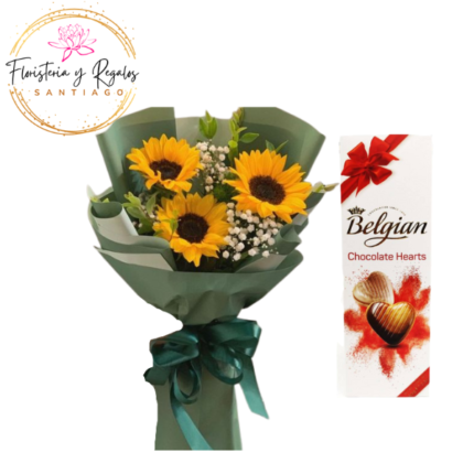 RAMO 3 GIRASOLES Y BOMBONES BELGIAN