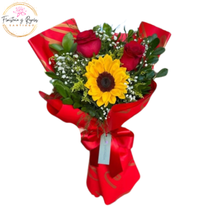 RAMO DE 2 ROSAS Y 1 GIRASOL