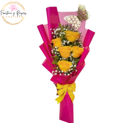 RAMO 5 ROSAS ALARGADO CON MARIPOSA