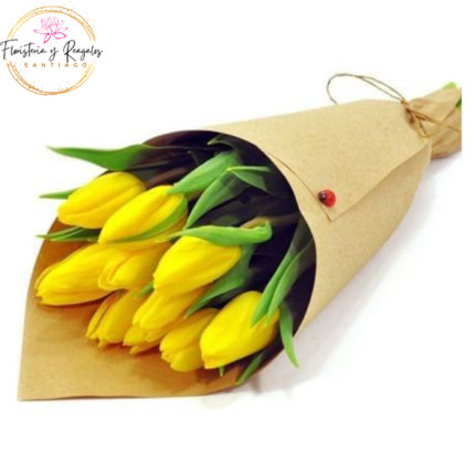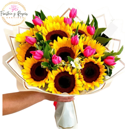 RAMO DE 10 GIRASOLES Y 10 TULIPANES CON LINDA ENVOLTURA