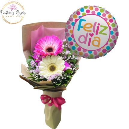 RAMO 2 GERBERAS, ENVOLTURA Y GLOBO