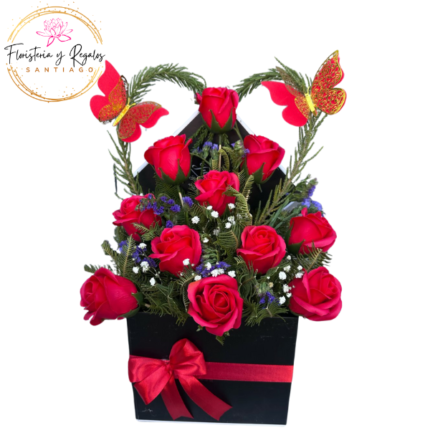 BOX DE 11 ROSAS JABON Y MARIPOSAS