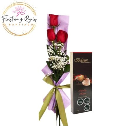 RAMO DE 3 ROSAS Y BOMBONES BELGIAN