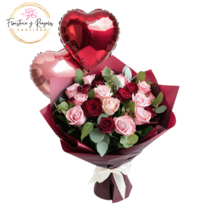 RAMO ÑUÑOA DISPERSO 24 ROSAS Y 2 GLOBOS