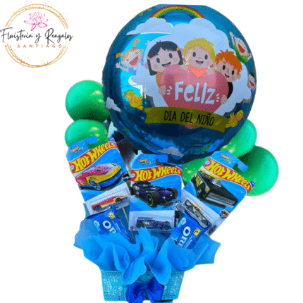 ARREGLO DE 2 OREOS, 3 AUTOS Y GLOBO