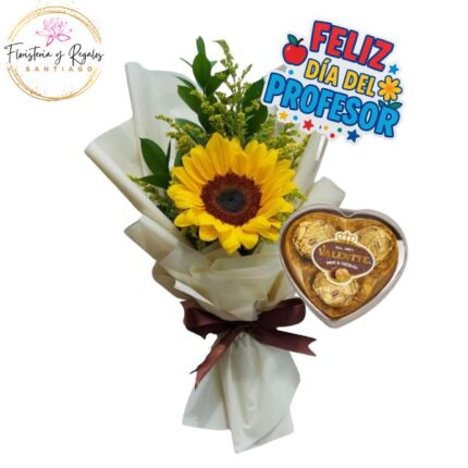 GIRASOL DIA DEL PROFESOR CON BOMBONES CORAZON Y TOPPER