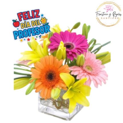 FLORERO VITACURA 6 ROSAS 4 GERBERAS PELUCHE 20 CM GLOBO Y FERREROS ROCHER 100G