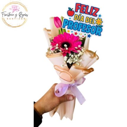 RAMO 1 GERBERA, 1 TULIPAN Y TOPPER
