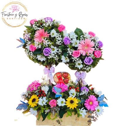 RAMO DIA DE LA NOVIA 2 ROSAS, 2 GERBERAS, MARGARITAS Y GLOBO