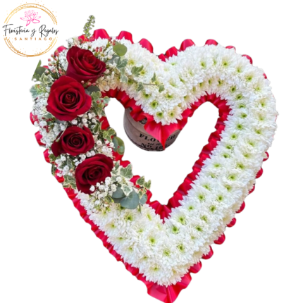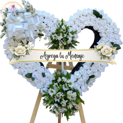 CORONA CORAZON CON 100 ROSAS JABON, TOPIARIO, CINTA, LAZO Y ATRIL