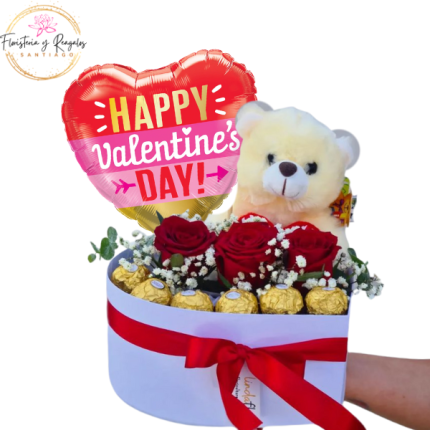 BOX AMOR DE 15 ROSAS, PELUCHE DE 30CM Y GLOBO BURBUJA