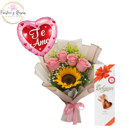RAMO AMOR DE 3 ROSAS, 1 BOMBON Y GLOBITO