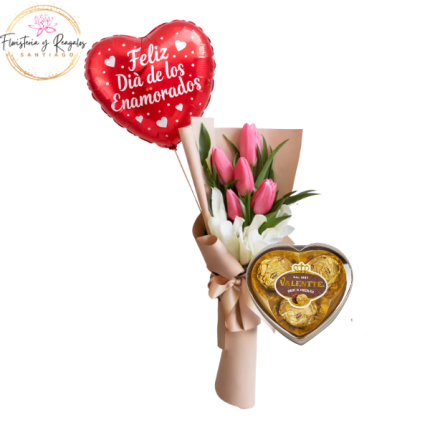 RAMO DE 8 ROSAS 8 TULIPANES + GLOBO