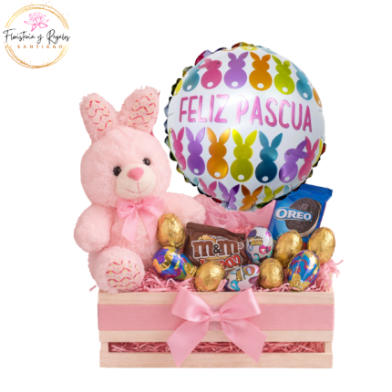 GUACAL PASCUA: PELUCHE 20CM, HUEVITOS, OREO, M&M Y GLOBO
