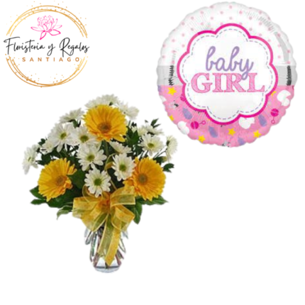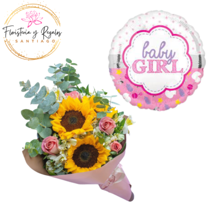 RAMO 2 GERBERAS, 1 GIRASOL, ENVOLTURA Y GLOBO