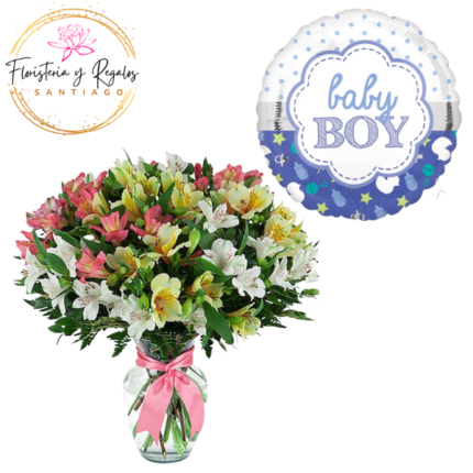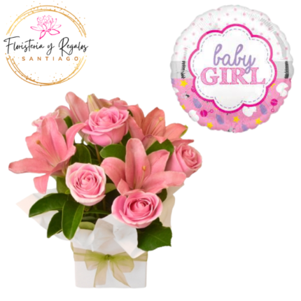 FLORERO 6 ROSAS 6 LILIUM + GLOBO