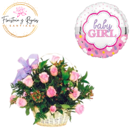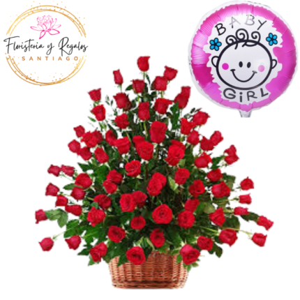 CANASTA DE 50 ROSAS DISPERSA + GLOBO