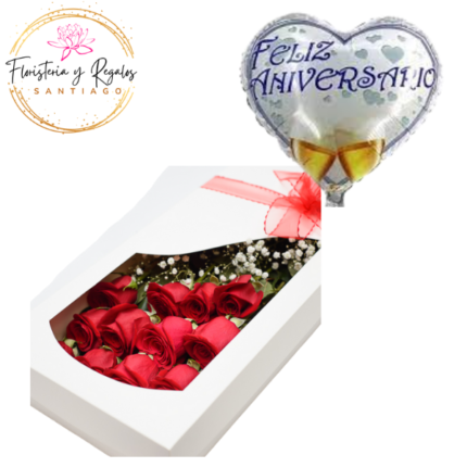 CAJA VISORA DE 12 ROSAS + GLOBO